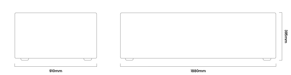 Base: 1880mm (L) x 910mm (W) x 395mm (H)