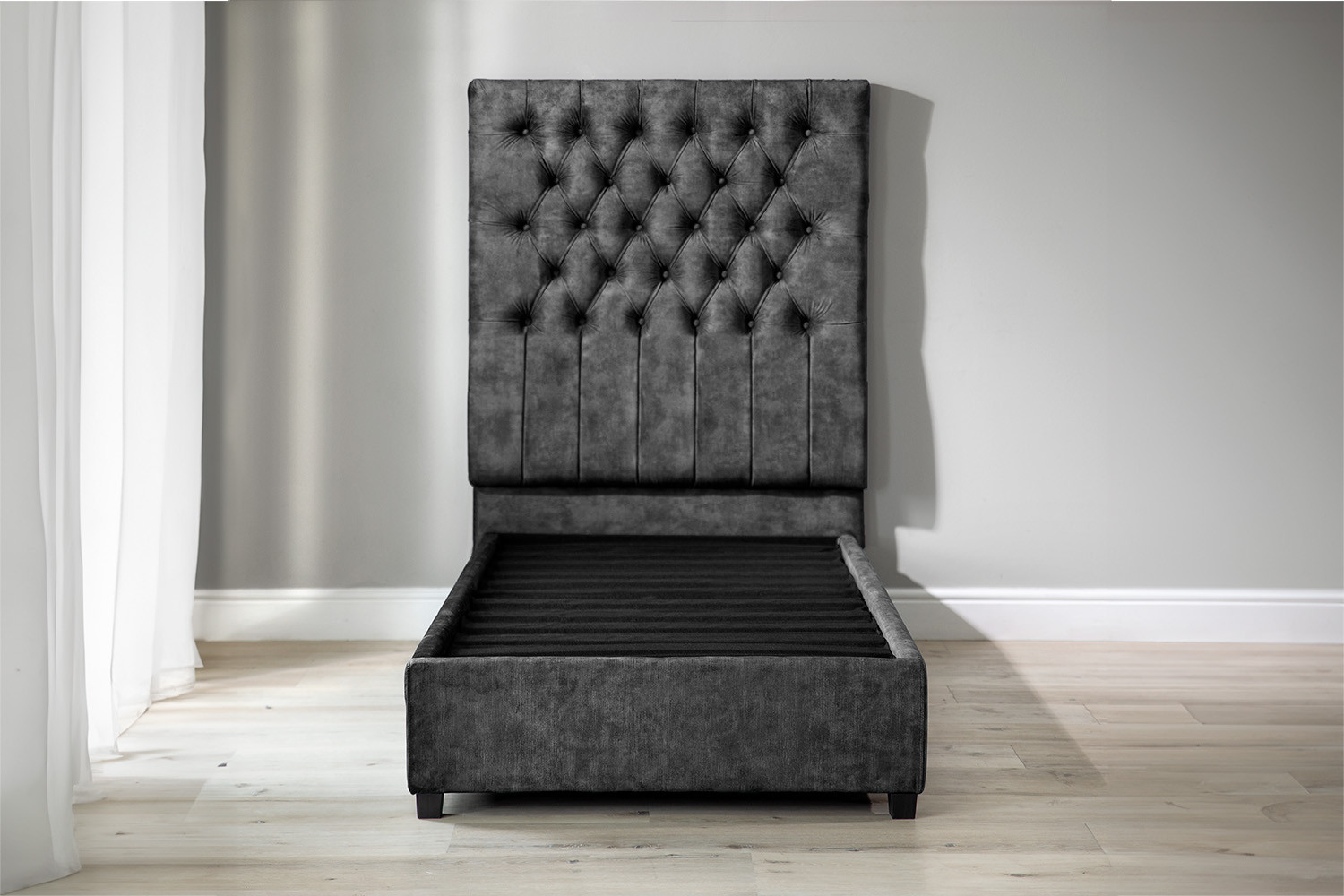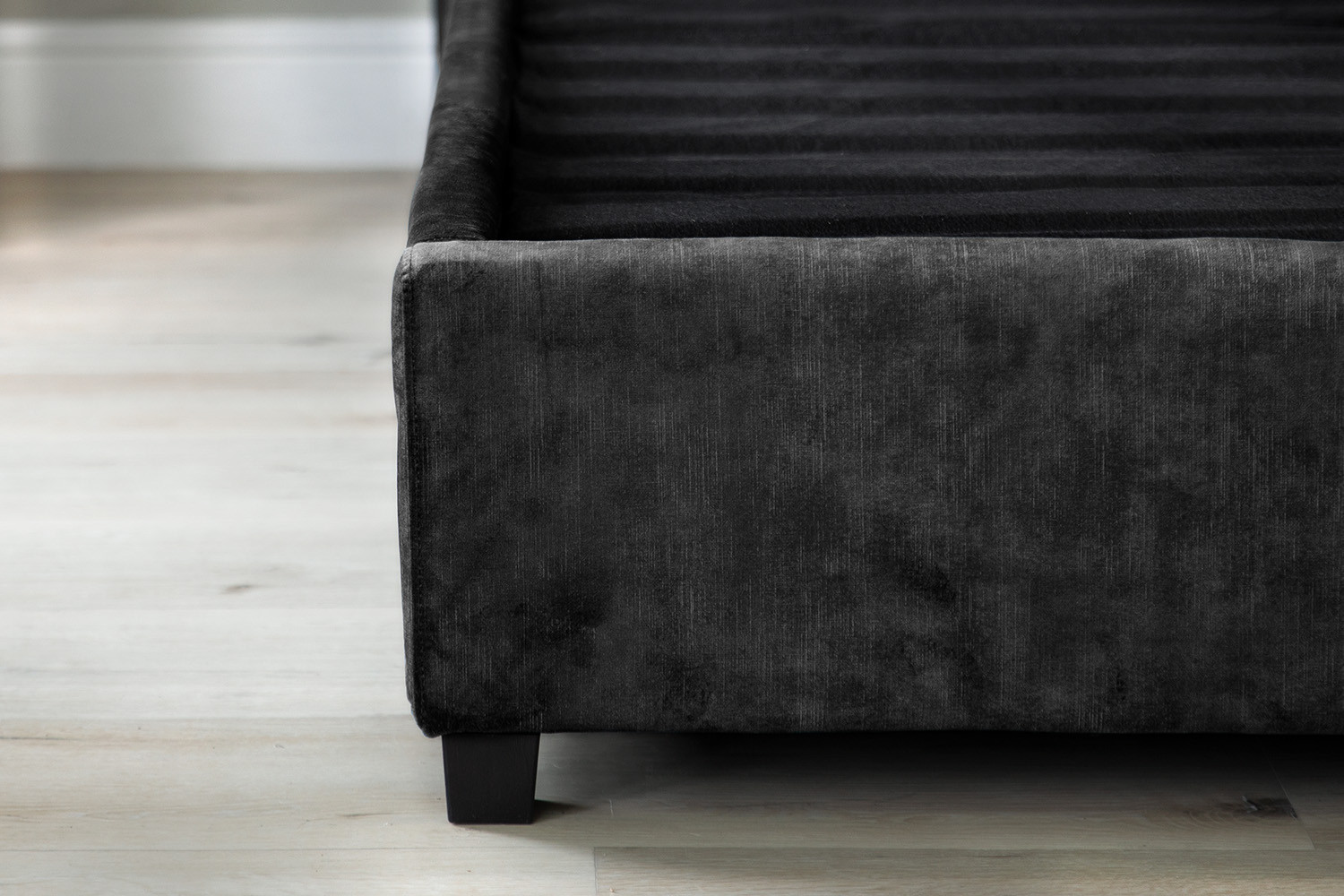 Revamp your bedroom with the Kate Headboard and Kylan Bed Base combination. This combination is upholstered in elegant velvet or polyester fabric. The bed base is a fully knocked-down, sturdy yet collapsible, metal frame giving you the versatility and support you need for a good night's rest.