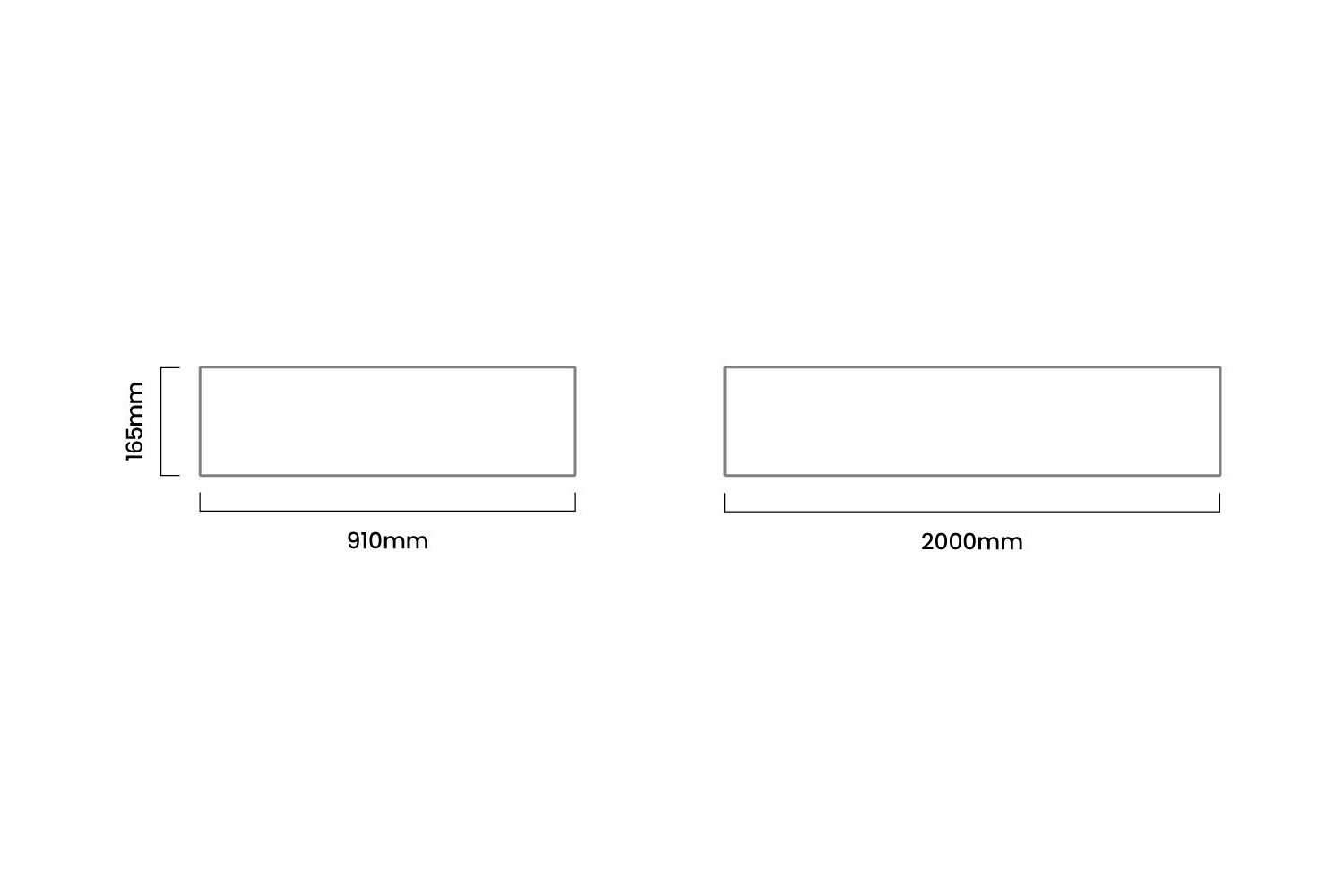 Single Extra Length - 2000mm (L) x 910mm (W) x 165mm (H)