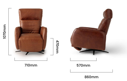 710mm (L) x 860mm (W) x 1070mm (H) | Seat Height - 470mm | Seat Depth - 570mm