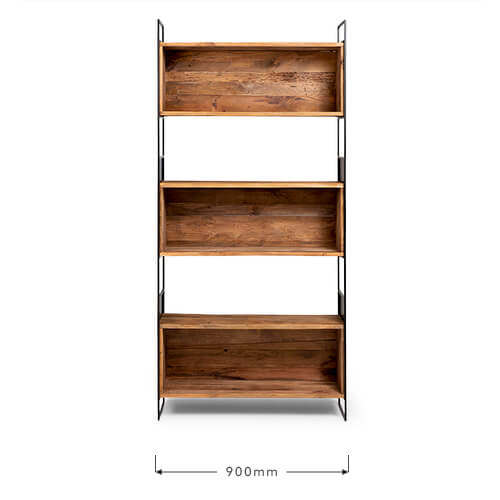 • Rustic reclaimed pine shelves with powder-coated steel frame