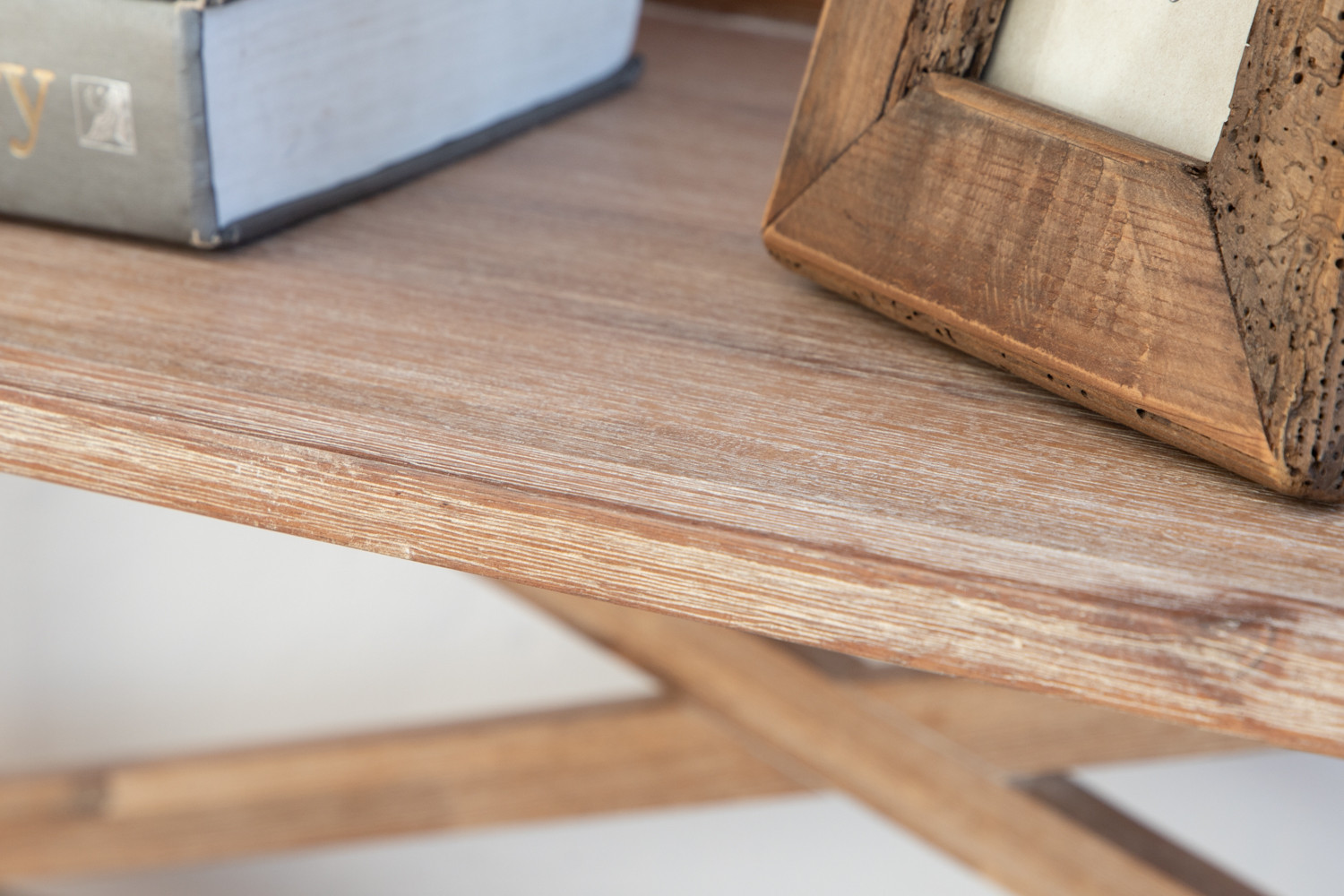 The display shelf is constructed from solid Acacia wood – a dense hardwood with exceptional durability – and covered with Acacia wood veneers that provide a superior aesthetic and protect the wood from expanding or splitting due to temperature variance - ensuring it’ll last you for decades. The wire brush technique works beautifully to bring out the unique grain of this wood while giving it a slightly weathered look that will hide any accidental scratches.