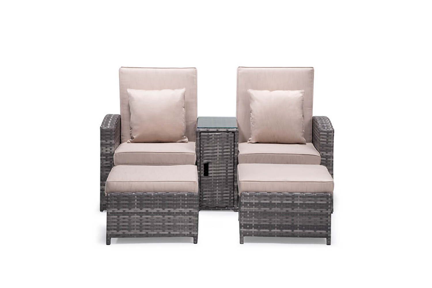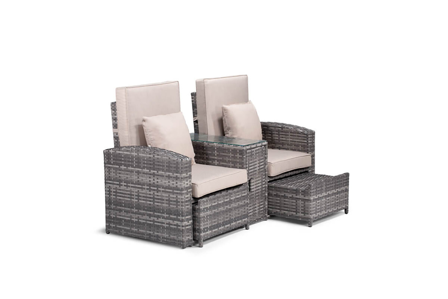 With the Boston Pool Lounger Set, you can save space without skimping on class or comfort. Ideal for smaller patios or where you want a more private setup you can enjoy with someone special, this contemporary two-seater set including reclining seats and individual footrests has everything you need to kick back and relax in style.