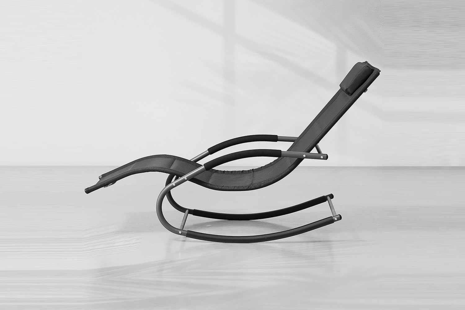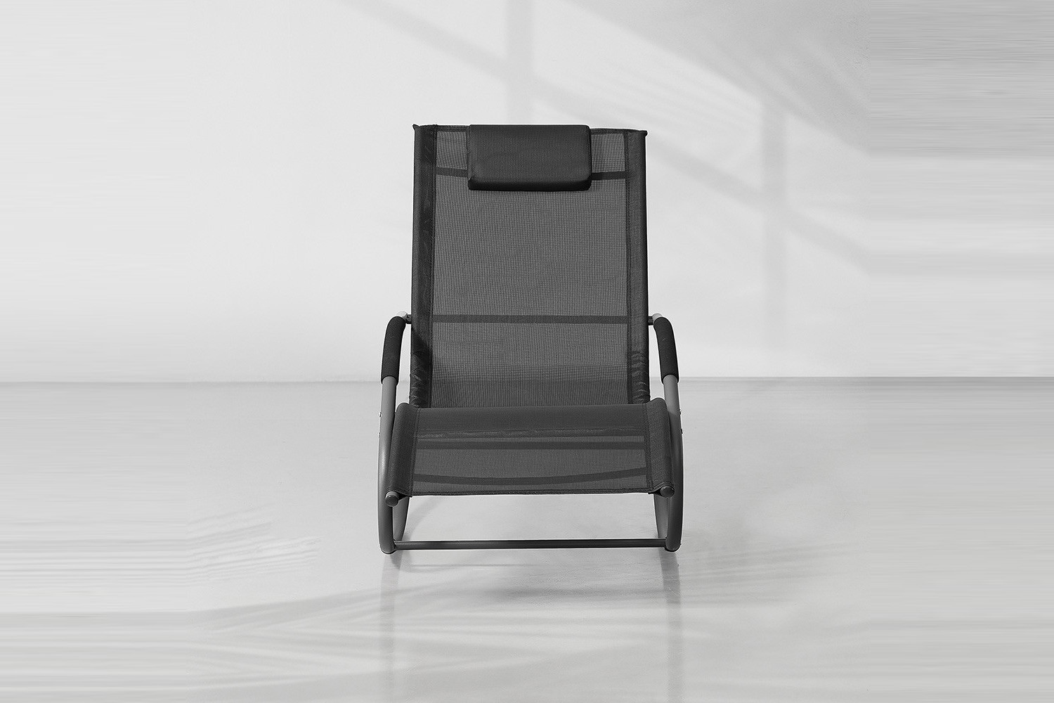 Keep things cool by the pool and lull your stress away with the Chelsea Rocking Outdoor Pool Lounger. This stylish contemporary sun lounger features a superbly comfortable design featuring breathable textilene fabric with a sturdy steel frame and built-in headrest pillow. A sleek, inviting and durable piece to upgrade your outdoor space.