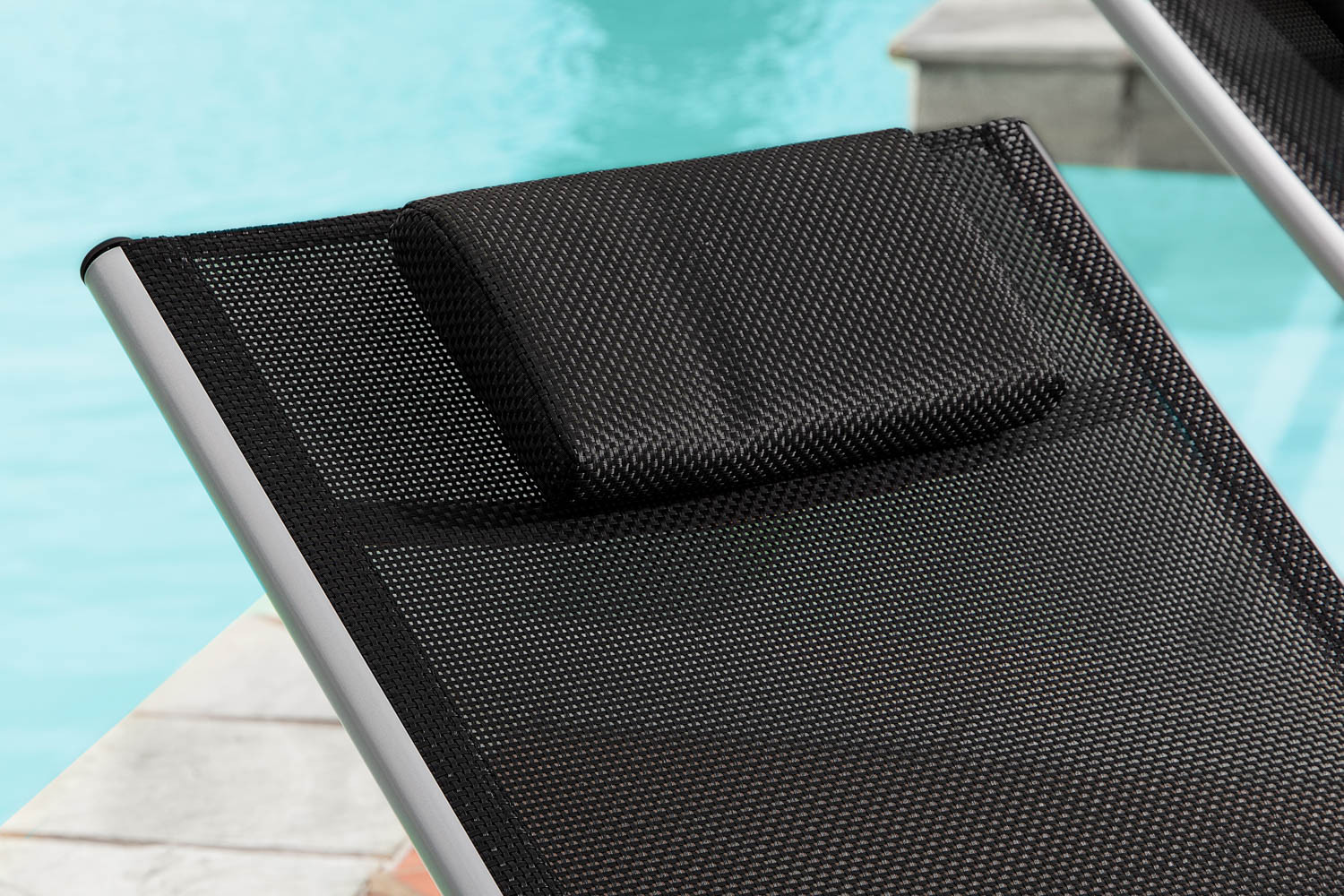 With its curvaceous lines and breathable mesh surface, the Florida Pool Lounger is cool, sleek and inviting. The perfect spot to cool down or catch some sun by the pool. This relaxing and practical outdoor lounger features quality textilene, a lightweight yet durable aluminium frame and a comfortable cushioned headrest.