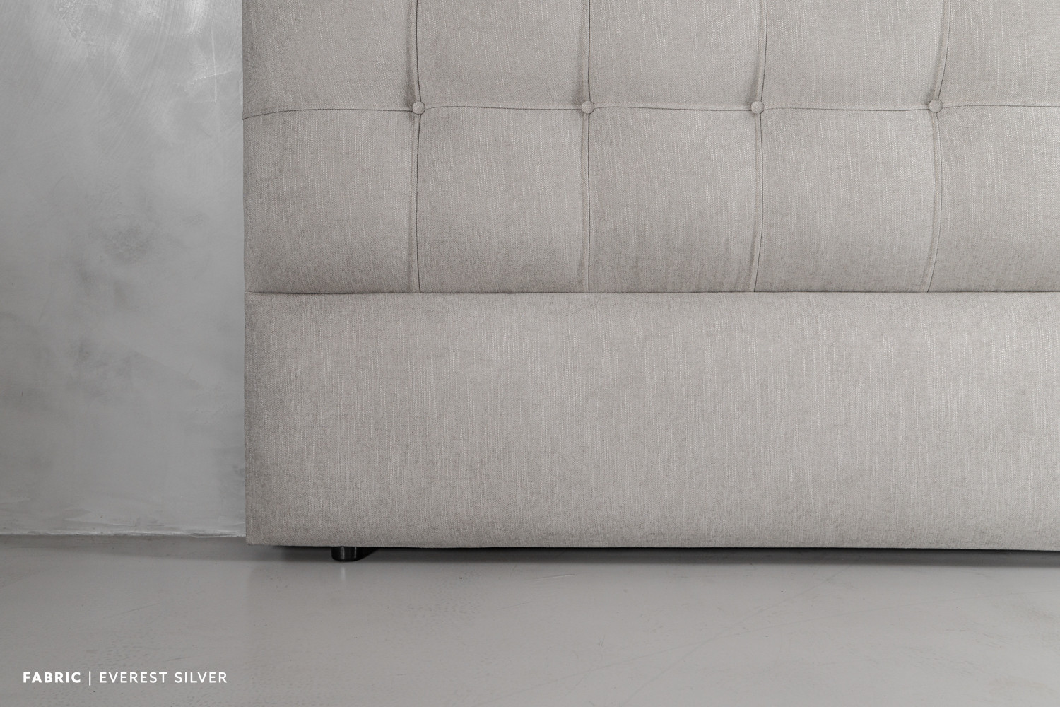 The Ariella headboard features a large grid tufted design with button detailing for a stylish contemporary look. Generously padded and well proportioned, this headboard offers cosy and comfortable support when you need a couple of peaceful hours to work or read in bed.