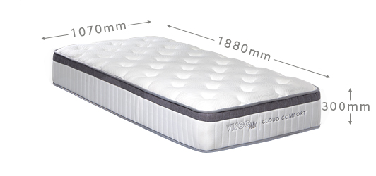 The Cloud Comfort mattress is the ideal all-rounder offering the benefits of memory foam and pocket springs at exceptional value for money. The mattress features a comfort layer made up of high-density memory foam and high resilient foam layers, with the support of high-quality pocket springs. This creates the ideal system for pressure relief in the places you need it most, enabling better spine alignment while you sleep. At the same time, complete motion isolation ensures you won’t be disturbed by your partner’s movements. The foam-encased spring system has been designed for optimal edge support so you get full use of the entire mattress surface.