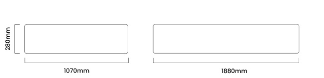1880mm (L) x 1070mm (W) x 280mm (H)