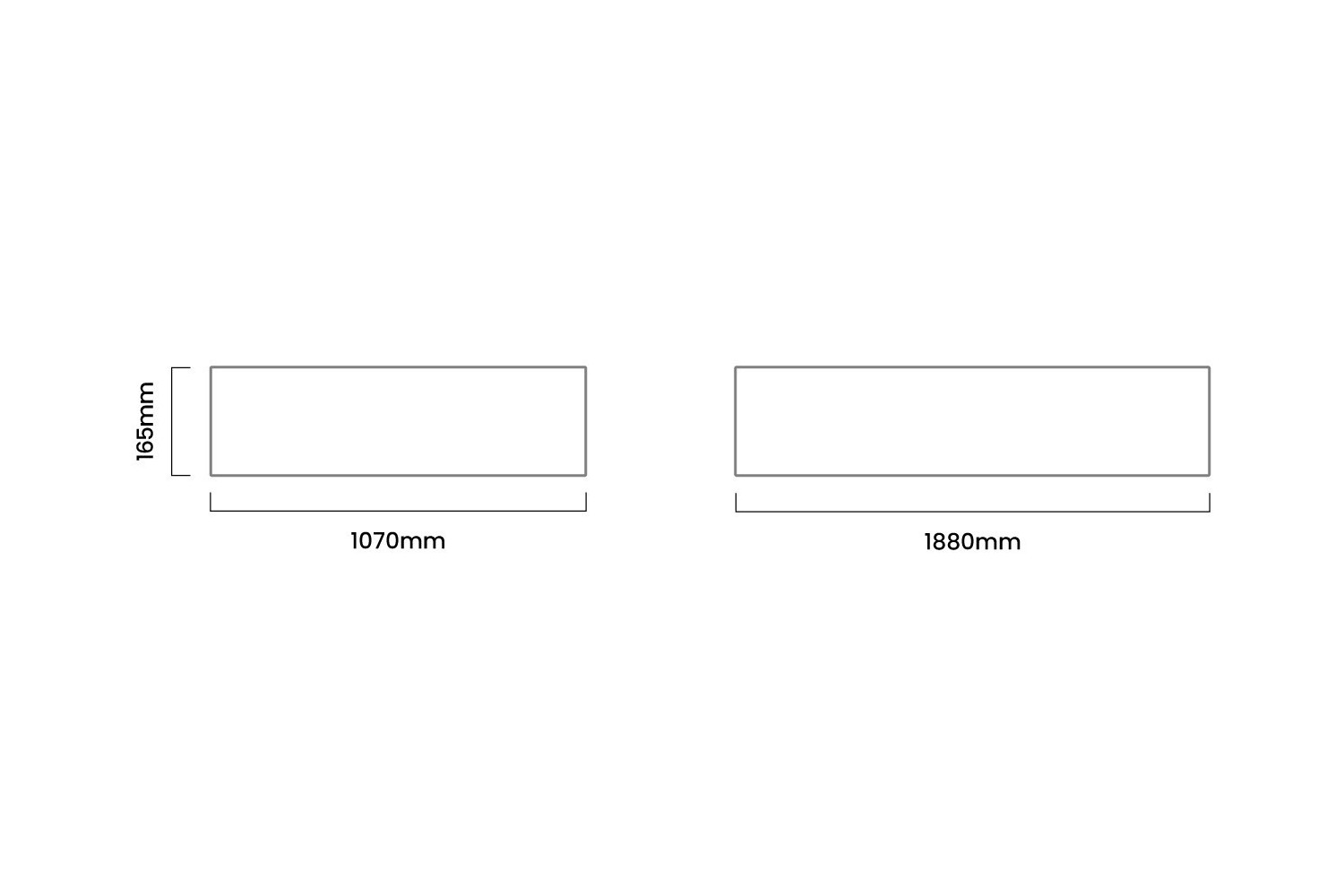 Three Quarter - 1880mm (L) x 1070mm (W) x 165mm (H)
