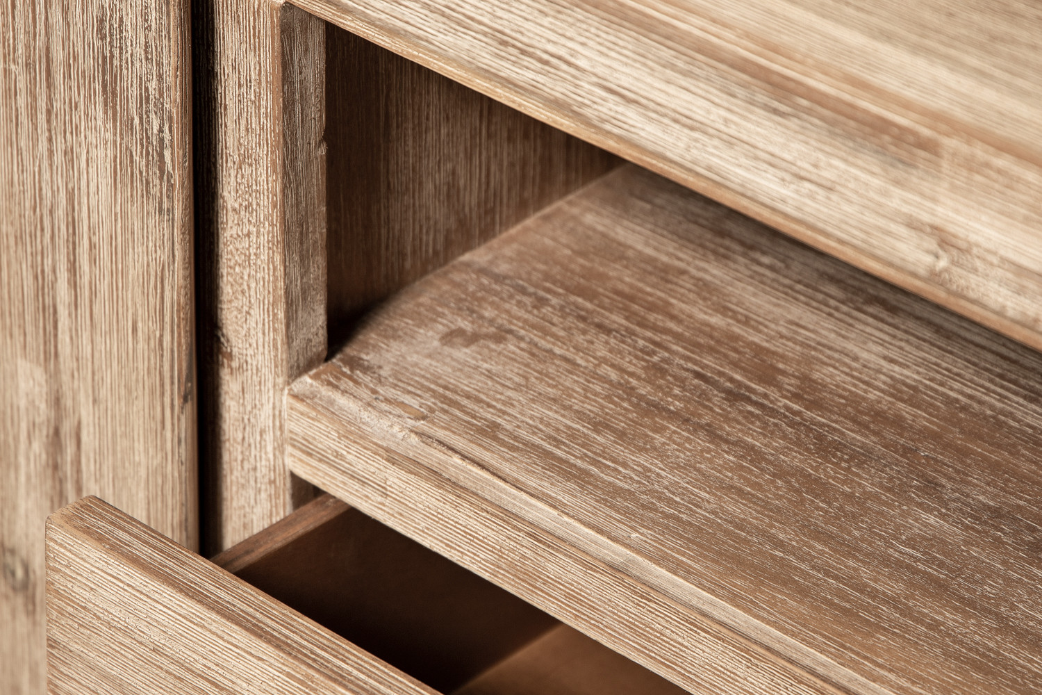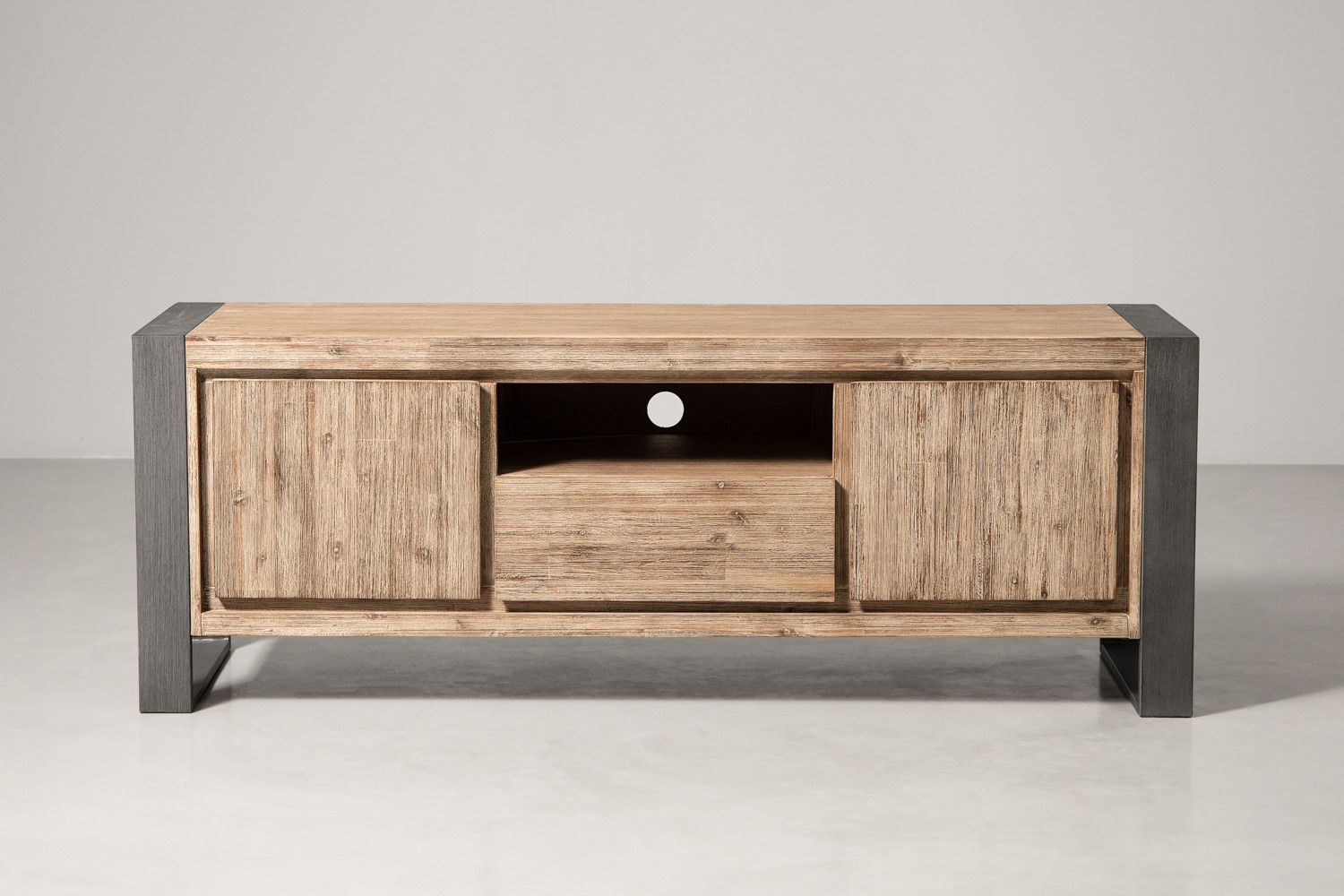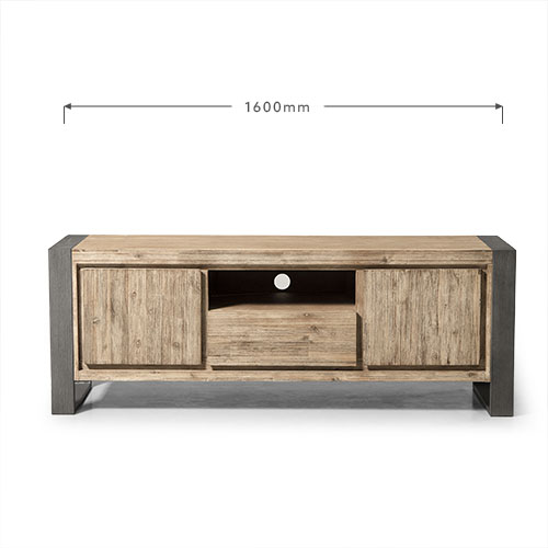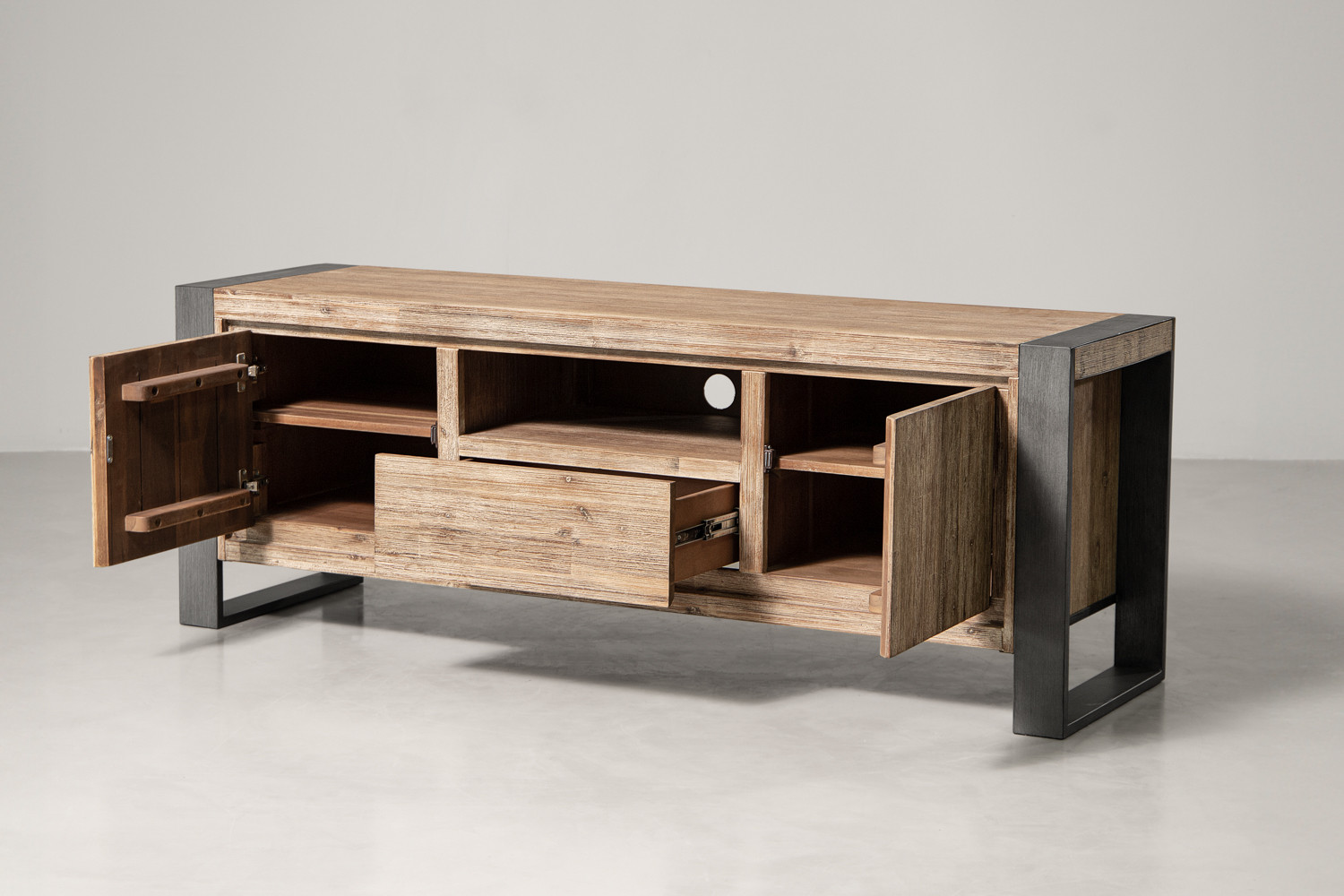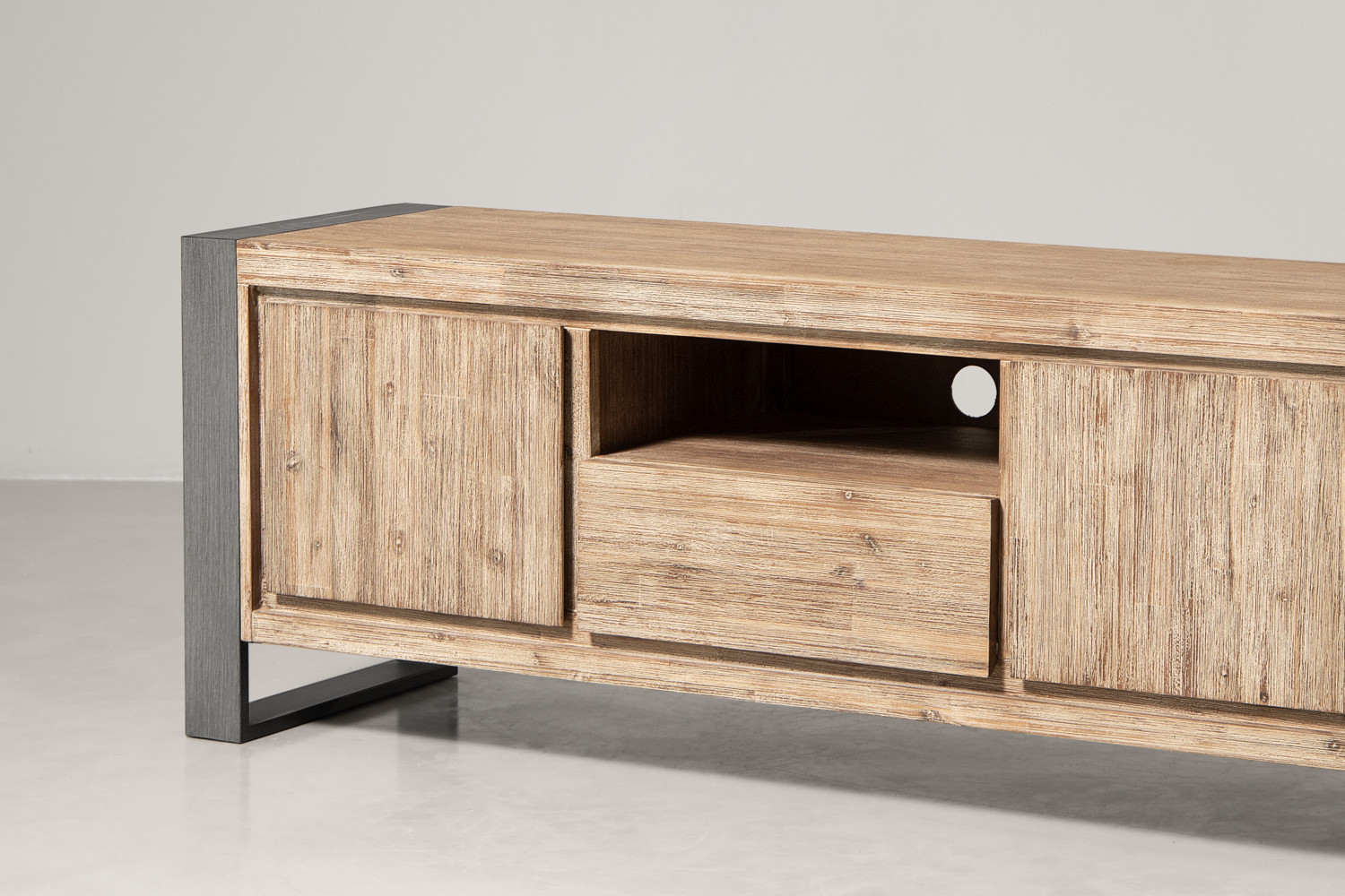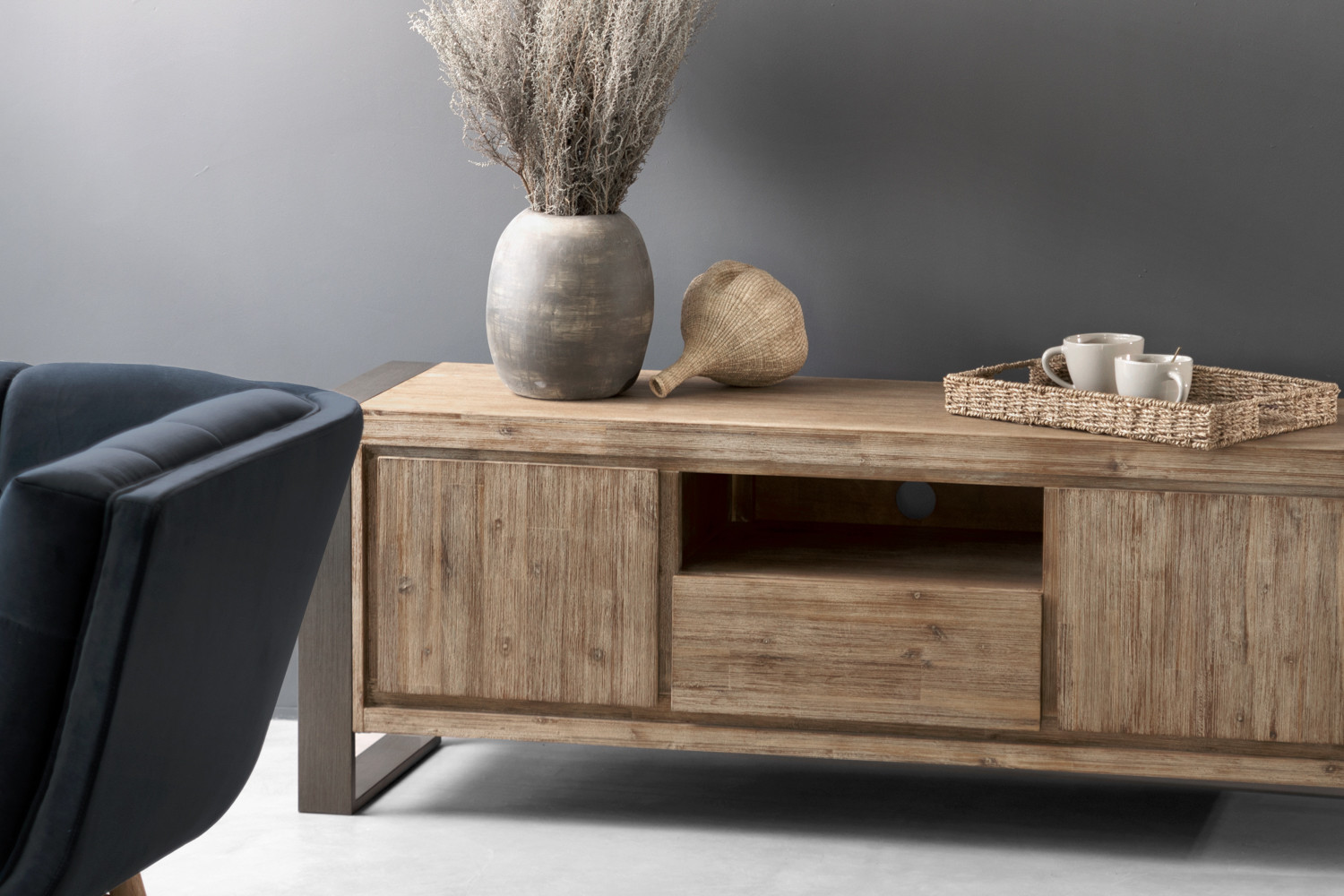 The TV Stand is constructed from solid Acacia wood – a dense hardwood with exceptional durability – with Acacia veneers which provides a superior aesthetic and protects the wood from expanding or splitting due to temperature variance. The wire brush technique works beautifully to bring out the unique grain of this wood, while giving it a slightly weathered look that will hide any accidental scratches.