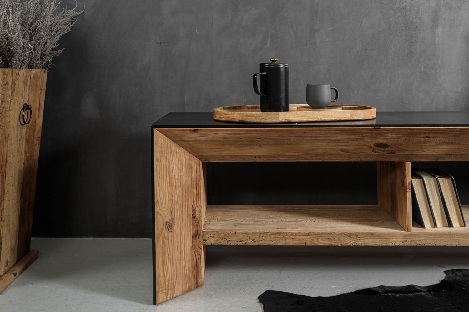 Elevate your living spaces with the Cordoba Collection, a captivating fusion of rustic charm and contemporary elegance. Crafted from reclaimed Pine wood and adorned with black-stained Oak wood veneers, this collection marries the natural allure of wood with a modern finish, creating a striking juxtaposition. The Cordoba Collection blends contrasting wood types and colours, creating in a poignant and distinctive design. Each piece within this collection boasts a unique chamfer edge design, adding a touch of sophistication to your living room and dining room.