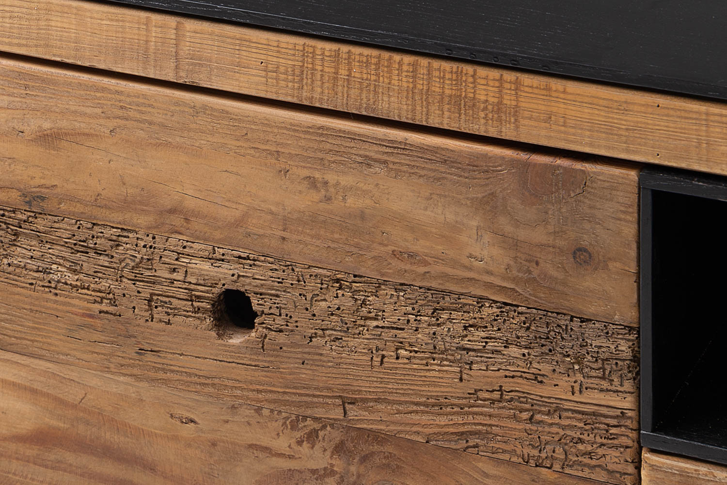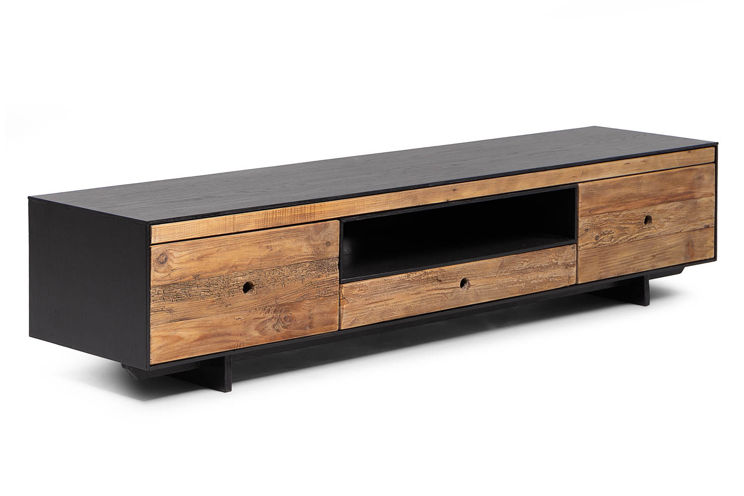 The Orman TV stand is beautifully crafted from eco-friendly reclaimed Pine. Built for sustainability and durability, this rustic TV stand introduces warm tones which produces a natural charm to your living space while the darker framing welcomes an industrial flair.