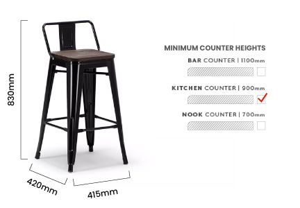 The Tyce Counter Bar Chair will inspire your space with its sleek Euro Industrial inspired design. This trendy bar chair constructed from metal with an Elm wood seat offers a sturdy and comfortable design featuring a convenient backrest and footrest to keep you dining and entertaining in style. Choose from a range of colours to find the perfect look to complete your home.