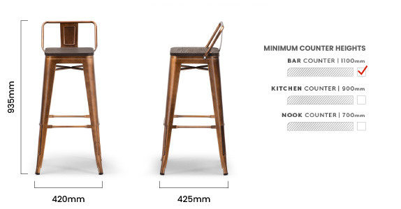 420mm (L) x 425mm (W) x 935mm (H) Seat Height - 770mm (H)