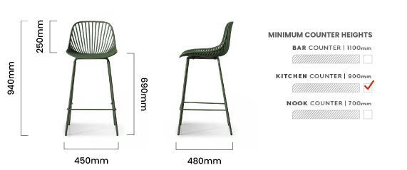 450mm (L) x 450mm (W) x 940mm (H) - Seat Height - 690mm (H)