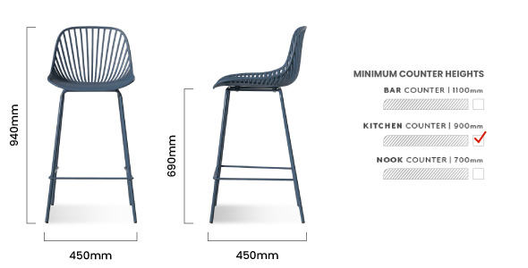 450mm (L) x 450mm (W) x 940mm (H) - Seat Height - 690mm (H)