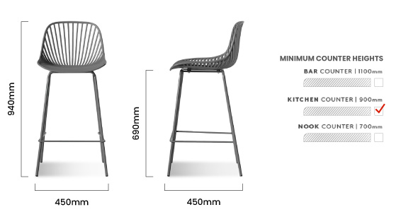 450mm (L) x 450mm (W) x 940mm (H) - Seat Height - 690mm (H)