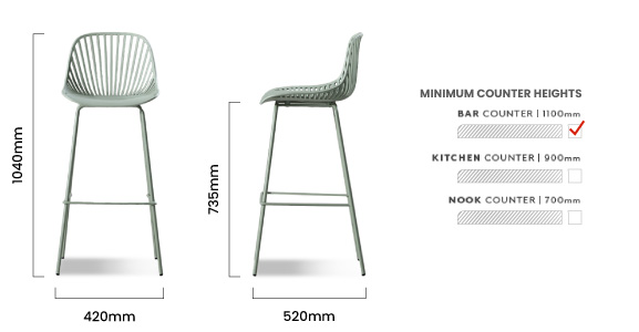 420mm (L) x 520mm (W) x 1040mm (H) - Seat Height - 735mm (H)